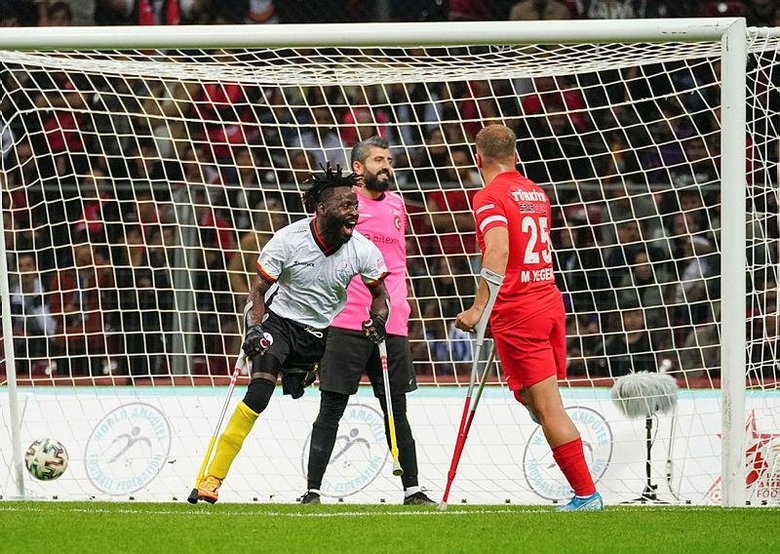 Ay yıldızlı ampute futbolcular, attıkları golden sonra asker selamı verdi.
