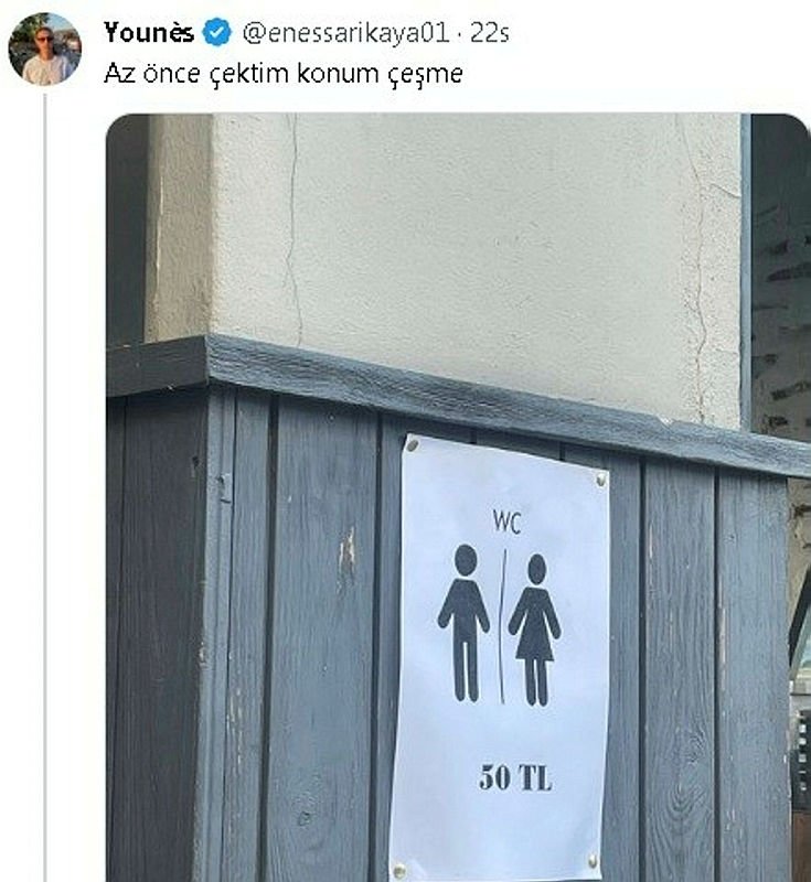 Twitter'da yapılan bir paylaşıma göre Çeşme'de tuvalet ücreti 50 lira oldu. Kullanıcı paylaşımına, "Az önce çektim konum Çeşme" notunu düştü. Daha öncede gastronomi yazarı Vedat Milor, popüler tatil bölgesi İzmir'in Çeşme ilçesi için yapılan "fake müşteri" ilanını paylaşmıştı. Bodrum'da ise bazı plajlarda şezlong kiraları 26 bin lirayı görmüş, fiyatların yüksekliği çok konuşulmuştu.