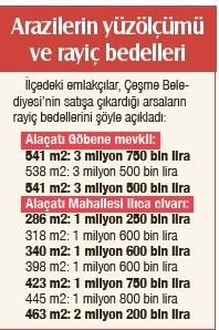 Bu arsaların 3'ü Alaçatı Göbene mevkiinde, 7 tanesi ise Alaçatı eski Ilıca Karakolu karşısındaki İzmirÇeşme Yolu kenarında yer alıyor. Başkan Oran, bu arsaların satışı için geçtiğimiz günlerdeki meclis toplantısında yetki istedi. AK Parti "hayır" oyu verirken satış kararı meclisten oy çokluğuyla geçti. İlçedeki emlakçıların yaptığı değerlendirmeye göre satılacak bu arsaların rayiç bedeli toplamda 23 milyon lirayı buluyor. Kamu arsalarının satış kararı ilçede büyük tepki topladı. Oran'ın daha önce neredeyse hiç banka kredisi kullanmayan Çeşme Belediyesi'ne bu dönem ilk kez kredi kullandırdığını da belirten Çeşmeliler, "İlçe halkının malları bu şekilde satılmamalı. Bu araziler ilçe için doğru projelerde kullanılmalı. Belediye her projesi için gayrimenkul mü satacak. Başkan, satacak yer kalmayınca ne yapacak?" dedi.