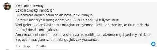 CHP'nin henüz aday belirleyemediği ve işçilerin maaşlarını alamadığı Edremit Belediyesinde şaşkınlık veren bir gelişme yaşandı. İşçilerin maaşlarını yaklaşık 1 yıldan bu yana parça parça ve eksik ödeyen, bu nedenle işçi sendikalarının da yakın takibinde olan Edremit Belediye Başkanı CHP'li Selman Hasan Arslan, sosyal medya hesabından, işçi maaşlarına zam yaptıklarını duyurdu.