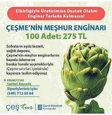 Çeşme Belediyesi şirketi Çeştur'a ait afişte 100 adet enginarın 275 liraya satıldığı belirtiliyordu. Ayrıca kapıya kadar da teslimat yapılacağı belirtiliyordu. Yani belediye tanesini 2.75 liraya satıyordu.