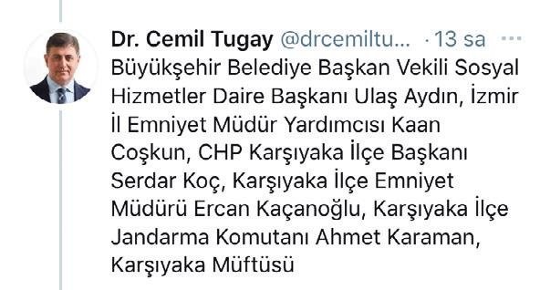 Bunu biz değil, Karşıyaka Belediye Başkanı Cemil Tugay söylüyor. Tugay, Zübeyde Hanım Mahallesi'nde açtıkları parkla ilgili yaptığı paylaşımda katılan protokol üyelerini sayarken Ulaş Aydın'ı "Büyükşehir Belediye Başkanvekili" sıfatıyla dile getirdi.