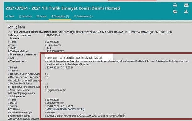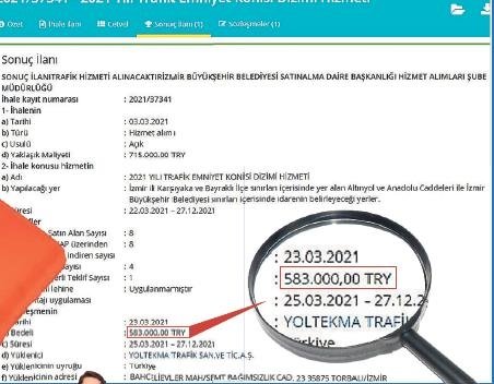 30 binden fazla çalışanı bulunan ve diğer yandan toplam borcu 12 milyar liraya dayanan Büyükşehir Belediyesi'nin, 30 bin çalışanı içinde sanki bu işi yaptıracak personeli yokmuş gibi bunun için ihaleye çıkması şaşkınlık yarattı. İhale sürecinde de tuhaflıklar yaşandı. İhale için 8 firma doküman aldı, bunların 4'ü teklif sundu. Ancak içlerinden sadece bir teklif geçerli sayıldı. Torbalı merkezli görünen Yoltekma Trafik Sanayi ve Ticaret A.Ş. firması, 583 bin liralık teklifiyle ihaleyi kazandı. Firmayla geçtiğimiz günlerde sözleşme imzalandı. Şirket, Karşıyaka ve Bayraklı ilçe sınırları içerisinde bulunan Altınyol ve Anadolu Caddesi ile belediye sınırları içerisinde idarenin belirleyeceği yerlerde yola trafik emniyet konisi dizecek. 27 Aralık 2021'e kadarki süreyi kapsayan ihalede dizilen koni uzunluğu toplam 2 milyon 200 bin metreyi bulacak. Soyer, geçtiğimiz yıl da aynı ihaleyi yapmıştı. Bu dizim işinin dışında Soyer, geçtiğimiz günlerde trafik emniyet konisi ve şerit ayırıcı alımı için de ihaleye çıkmıştı. Yani buna göre koniler belediyeye ait olacak, ihaleyi 583 bin liraya kazanan firma ise, sadece bu konileri belirli saatlerde dizip kaldıracak.