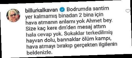 KALKAVAN, "Size kaç kere dm'den mesaj attım hala cevap yok. Sokaklar terkedilmiş hayvan dolu, barınaklar ölüm kampı, hava atmayı bırakıp gerçekten ilgilenin bendenizle" dedi.