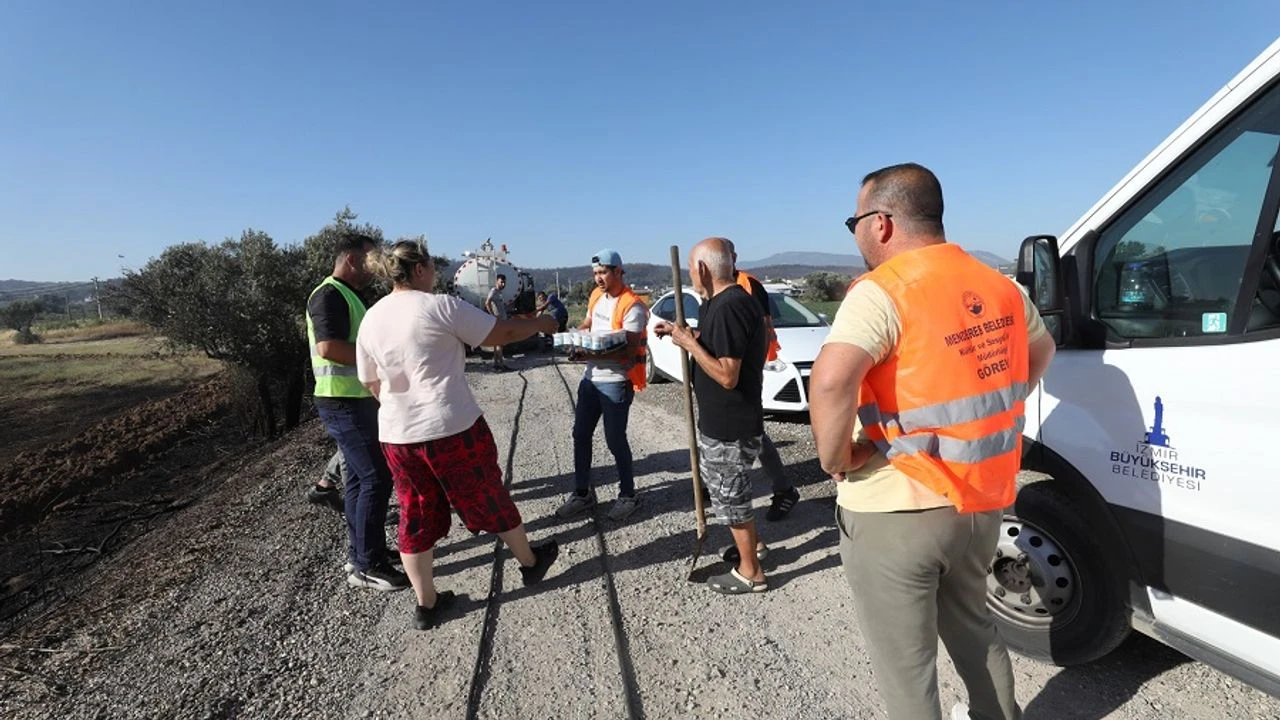 Menderes Belediyesi, yangın afetinin ilk gününden bu yana sahada etkin bir şekilde çalışmaya devam ediyor. Yangın söndürme, zarar gören hayvanlara veteriner desteği, vatandaş tahliyesi gibi birçok noktada desteğini sürdüren Menderes Belediyesi ekipleri vatandaş ve görevlilere yiyecek içecek konusunda da destek veriyor. Ekipler gün içinde düzenli olarak bölgeyi gezerek ihtiyaçları soruyor ve kumanyaları dağıtıyor. Vatandaşların tahliye edilmesinde de etkin bir şekilde rol alan Menderes Belediyesi, vatandaşların güvende kalmaları için çalışıyor.