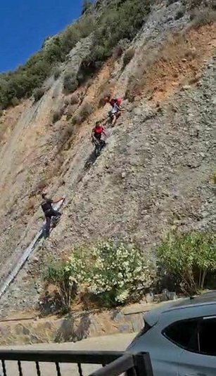 Aydın'ın Kuşadası ilçesinde Milli Dağcı olan Hesna Aslıhan Cengiz, antrenman için çıktığı dağda mahsur kaldı. İtfaiye ekiplerinin yardımıyla milli sporcu, mahsur kaldığı yerden indirildi. Bir vatandaş tarafından çekilen görüntülerde, itfaiye ekiplerinin milli sporcu Hesna Aslıhan Cengiz'i kurtarma operasyonu saniye saniye kaydedild