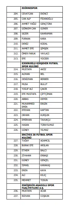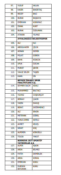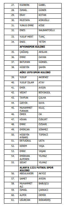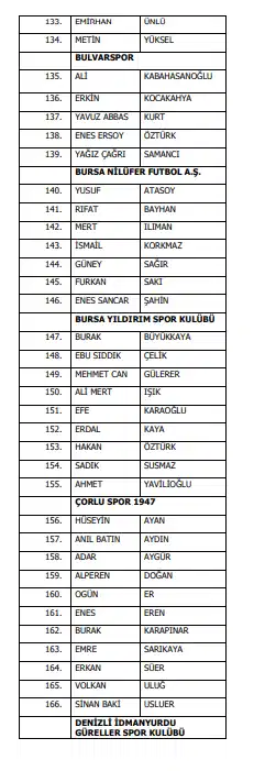TFF'den yapılan açıklamada, Trendyol Süper Lig'den 27, Trendyol 1. Lig'den 77, Nesine 2. Lig'den 282, Nesine 3. Lig'den 629 futbolcu ile 9 profesyonel oyuncu olmak üzere 1024 futbolcunun bahis soruşturması kapsamında disipline gönderildiği kaydedildi.