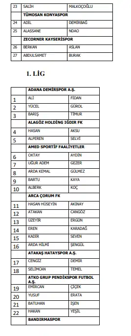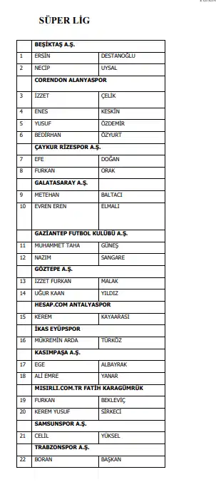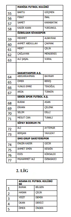Türkiye Futbol Federasyonu bahis oynayan futbolcuları açıkladı. Galatasaray'dan Metehan Baltacı ve Eren Elmalı Beşiktaş'tan ise Ersin Destanoğlu ve Necip Uysal bahis oynayan isimler arasında yer aldı. Listede Süper Lig'de 27 futbolcu yer alıyor.